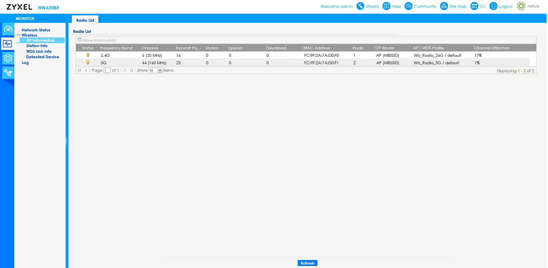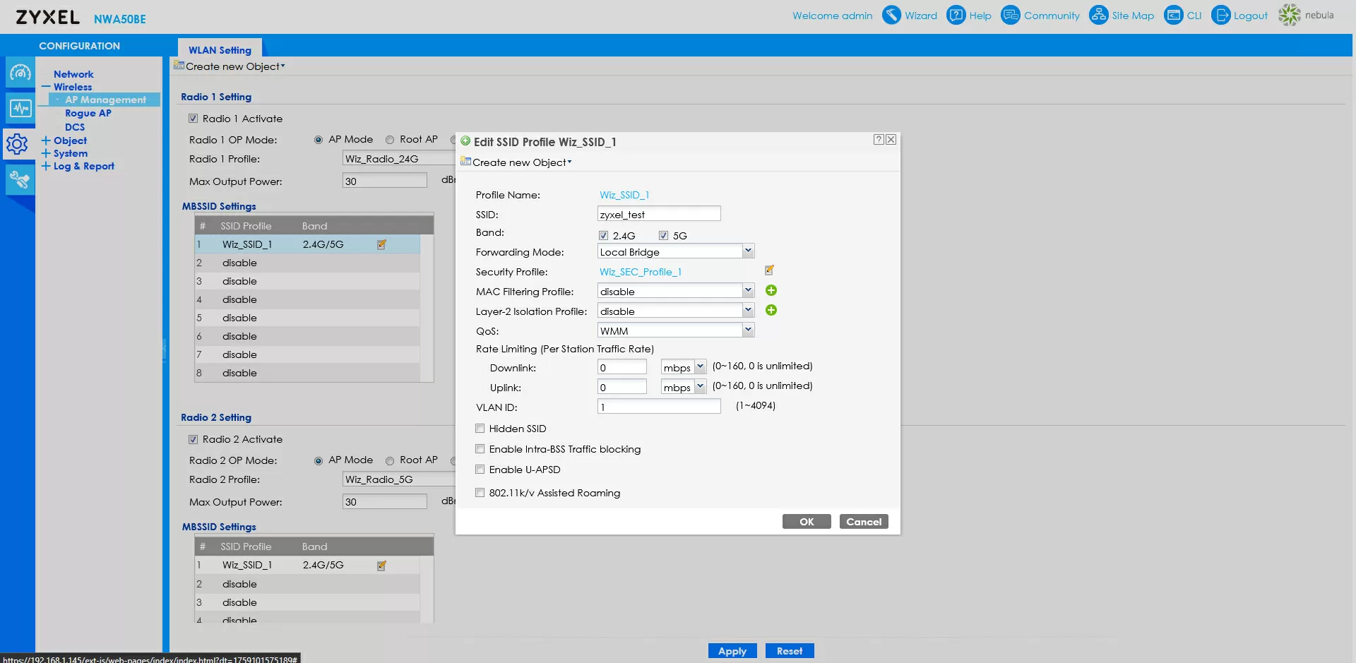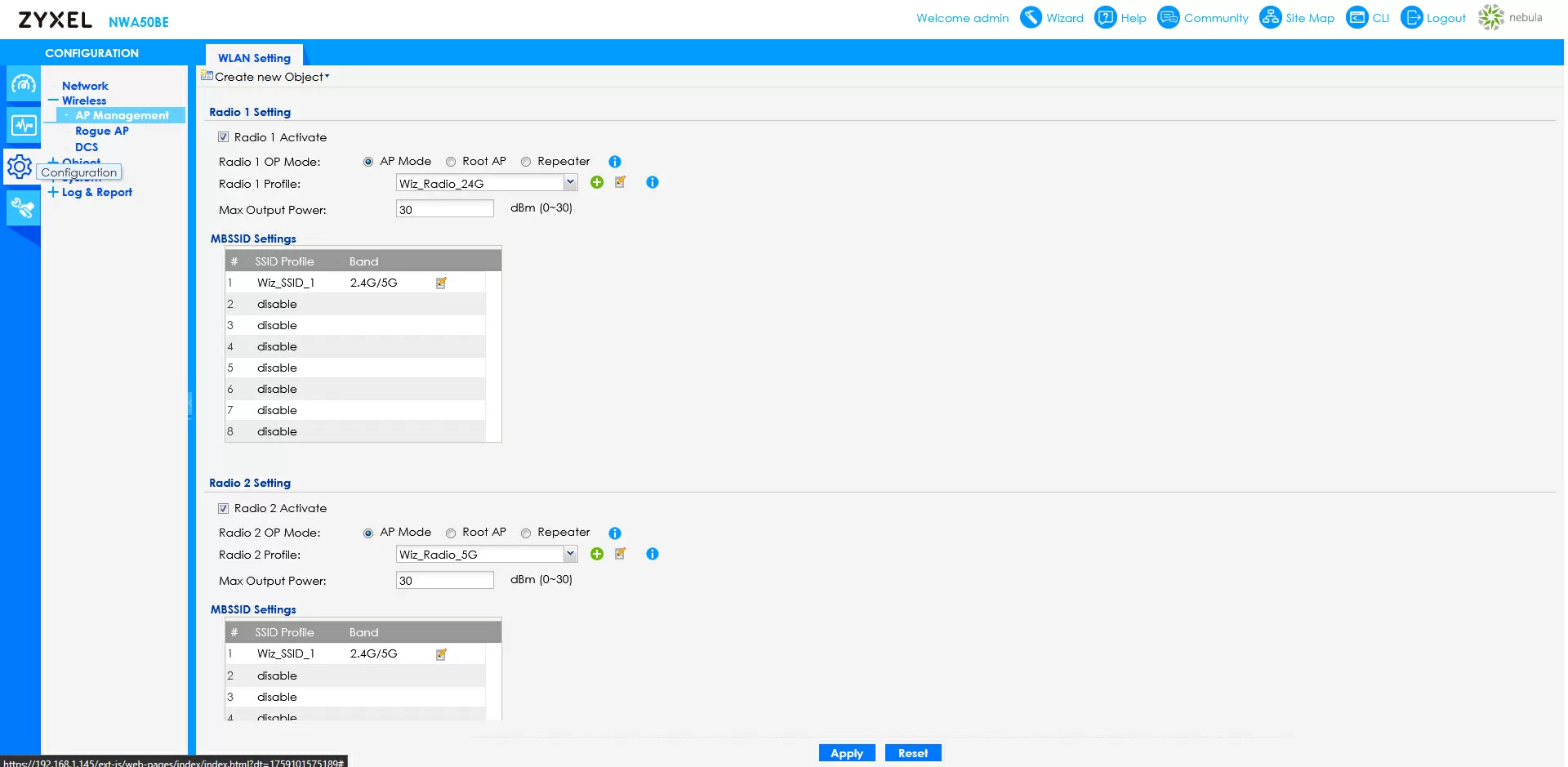 Начальная настройка может осуществляться и через собственный веб-интерфейс а имя пользователя и пароль можно найти на задней стороне корпуса точки доступа. Из множества настроек рассмотрим только самые важные: веб-интерфейс Zyxel NWA50BE удобен в использовании.