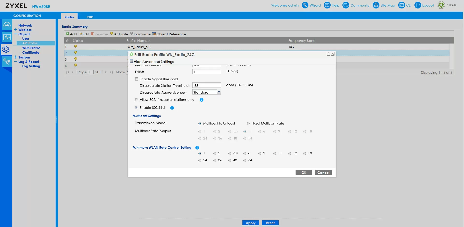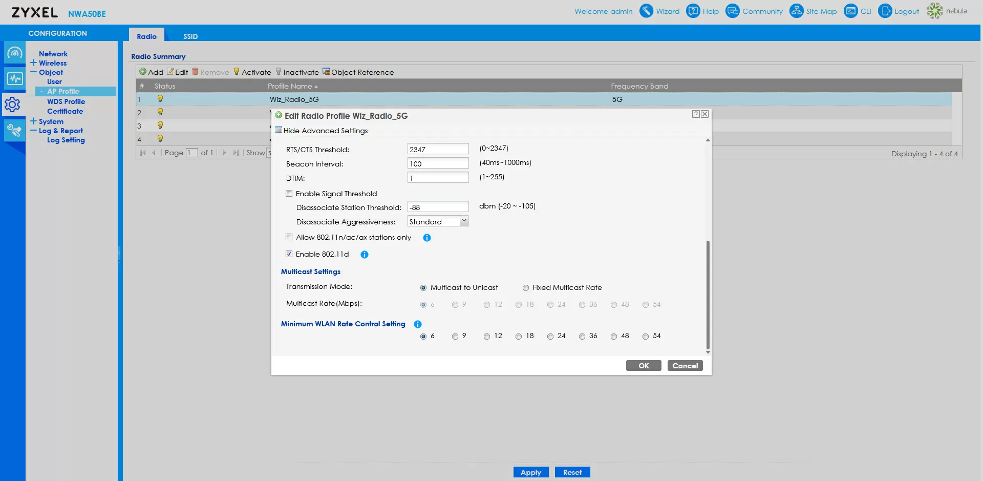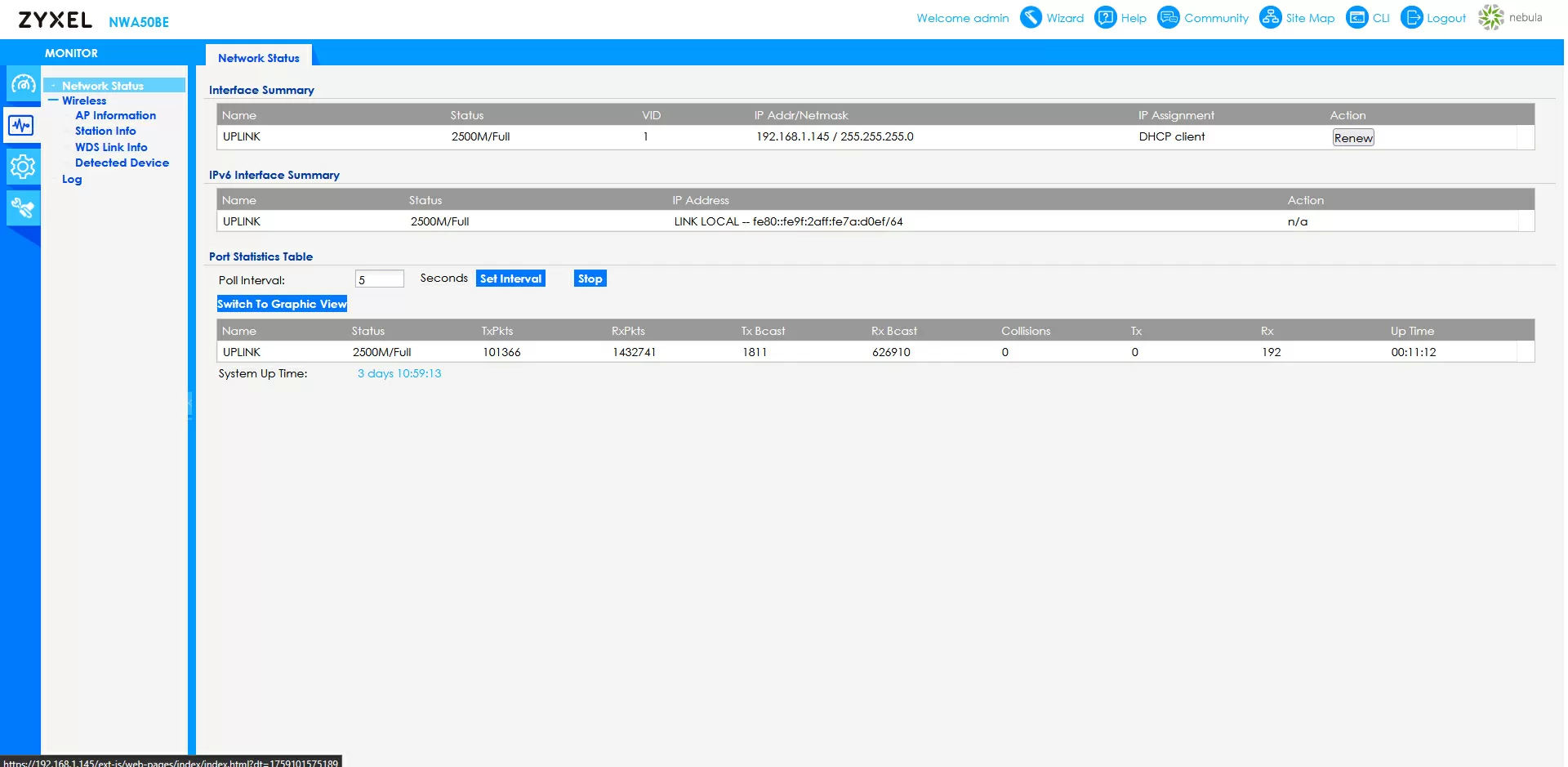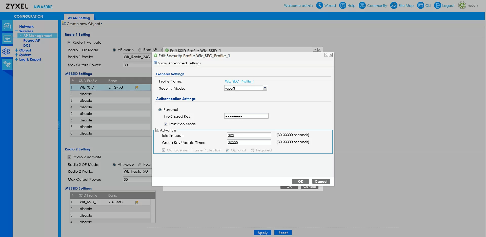 Начальная настройка может осуществляться и через собственный веб-интерфейс а имя пользователя и пароль можно найти на задней стороне корпуса точки доступа. Из множества настроек рассмотрим только самые важные: веб-интерфейс Zyxel NWA50BE удобен в использовании.