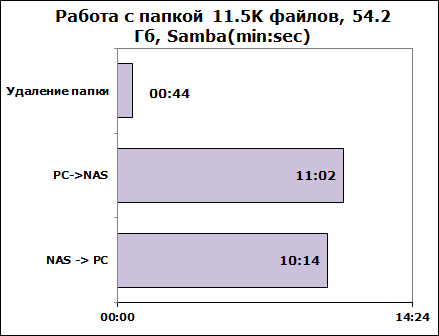 Проведем тест копирования папки, содержащей 11520 разнородных файлов общим объемом 54.2 Гб с файлового сервера на компьютер и обратно.