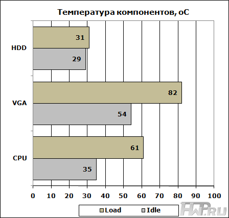 Тестирование проходило при температуре 23 градуса. Для прогрева использовались тестовые пакеты OCCT, 3DMark06 и WinRAR.