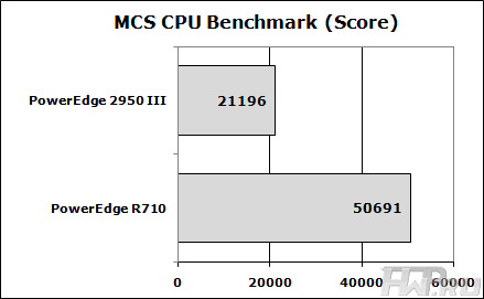 В тесте MCS Benchmark мы наблюдаем двукратное превосходство новинки, что легко объясняется синтетической сущностью теста и большим количеством виртуальных ядер в двухпроцессорной архитектуре Nehalem.