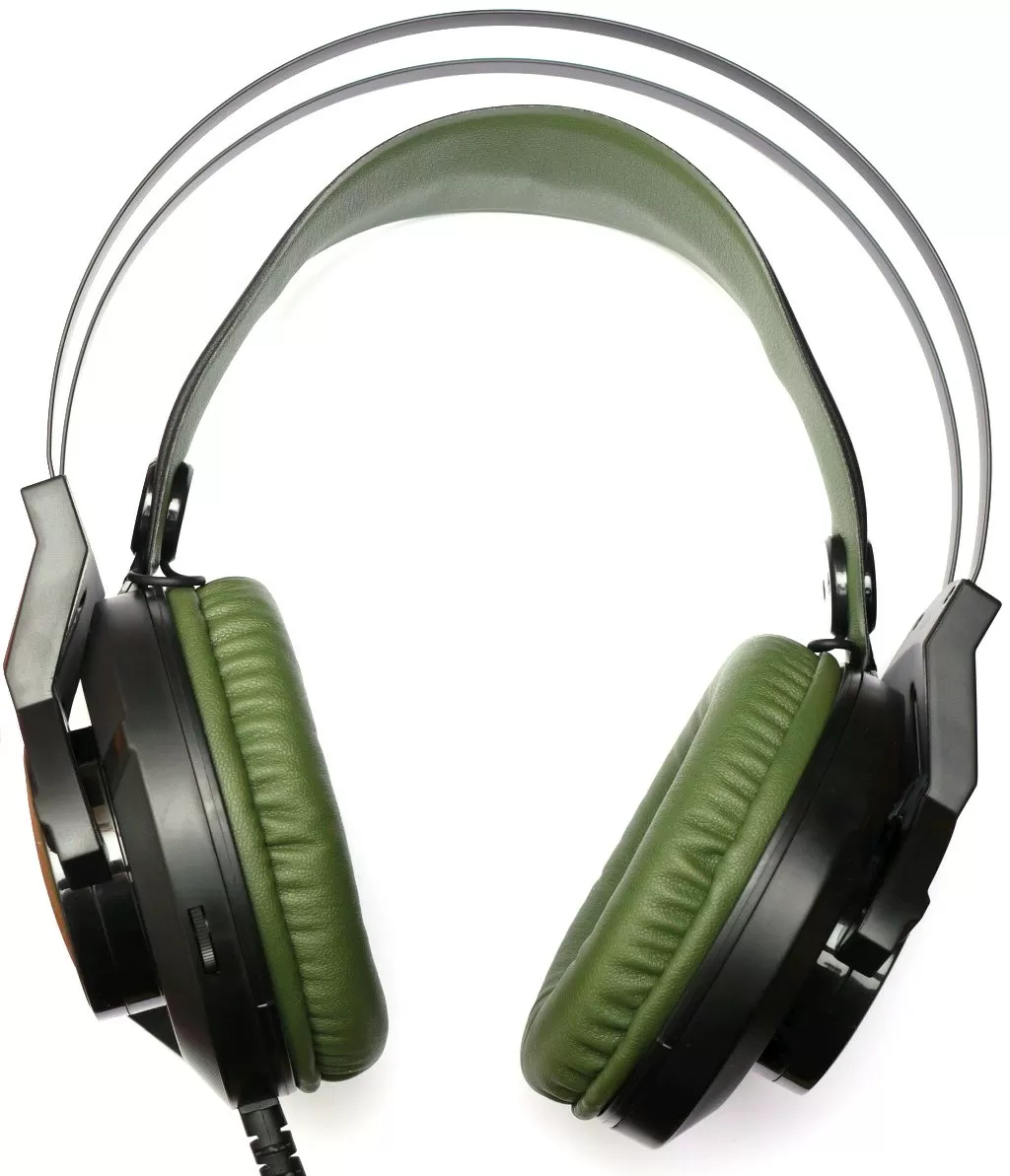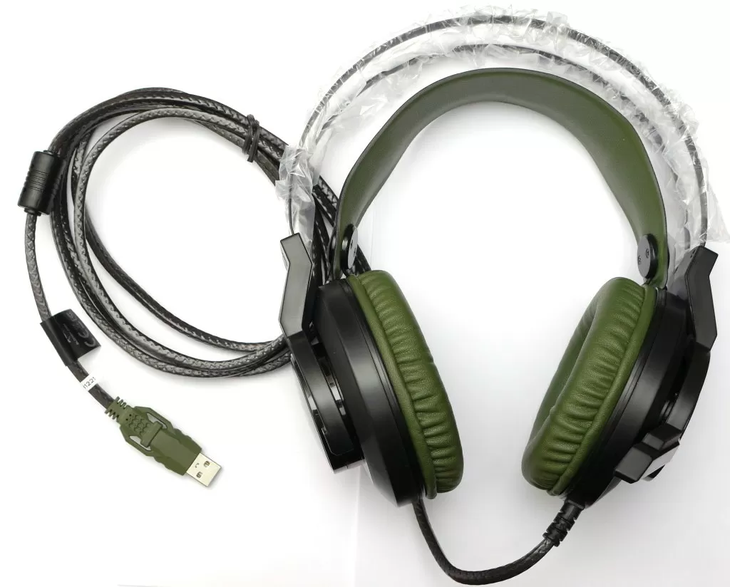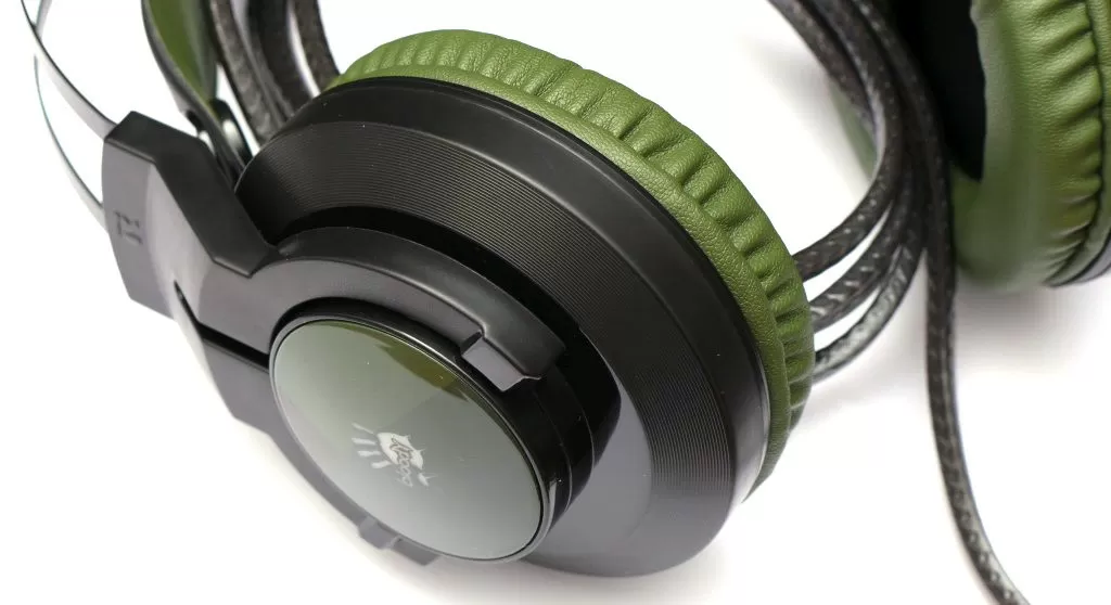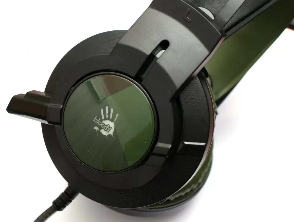 Чашки выполнены из пластика чёрного цвета. Амбушюры и регулируемое оголовье имеют зелёный (камуфляжный) цвет, который используется не только в этой новинке бренда, но и, например, в мышке J95, обзор на которую мы также готовим.