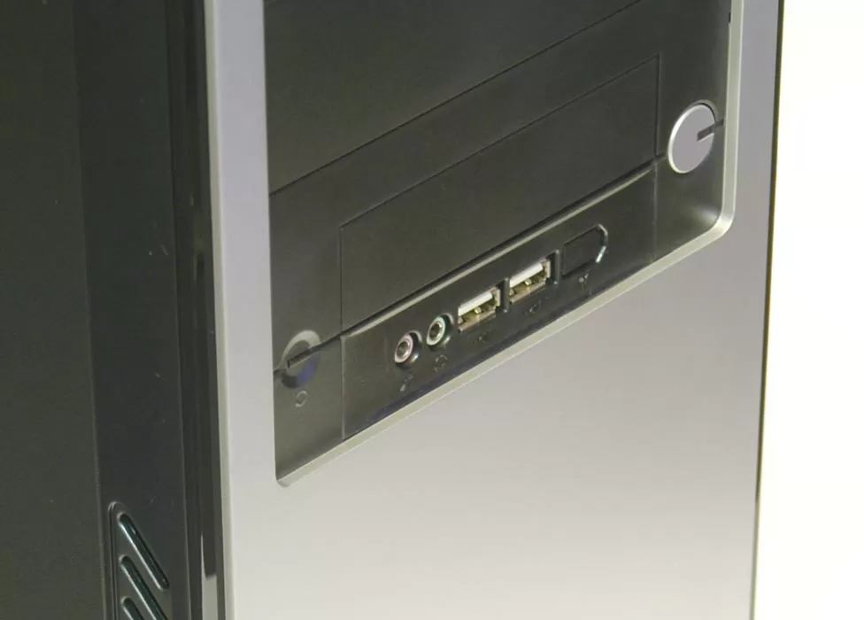 Сейчас редко кто устанавливает в компьютер внешние 3.5" устройства - дисководы или магнитооптику. Поэтому корпус Compucase 6C60BS хоть и имеет два внешних 3.5" отсека, один из них отдан под установку аудио гнёзд и USB портов. Опционально может быть установлен ещё и внешний порт FireWire, но здесь его нет.