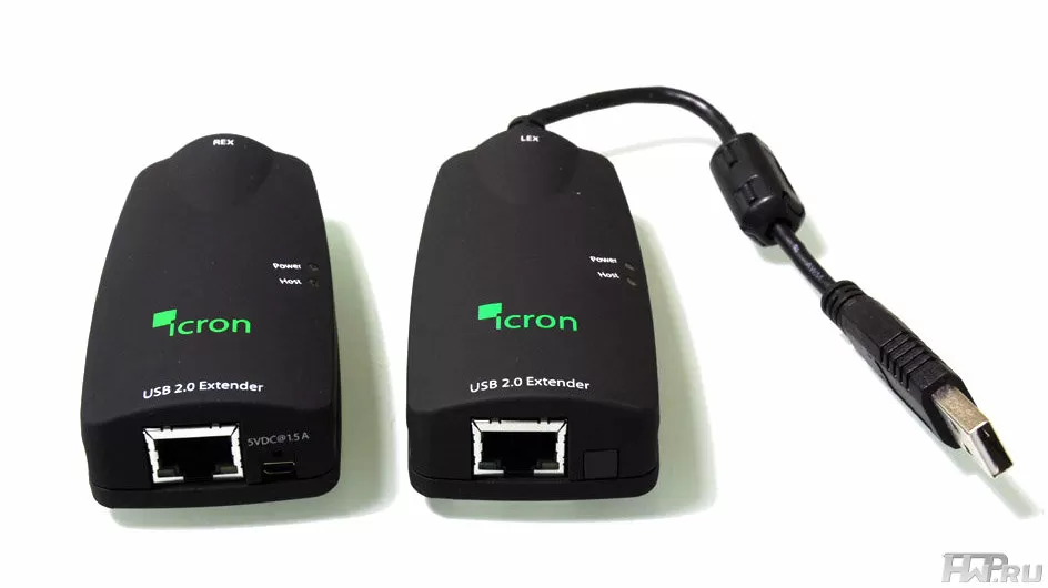 Модуль LEX, подключающийся к ПК при помощи несъемного кабеля, такой же, как и в комплекте Icron USB Ranger 2101, комплект поставки отличается модулем REX и блоком питания для него.