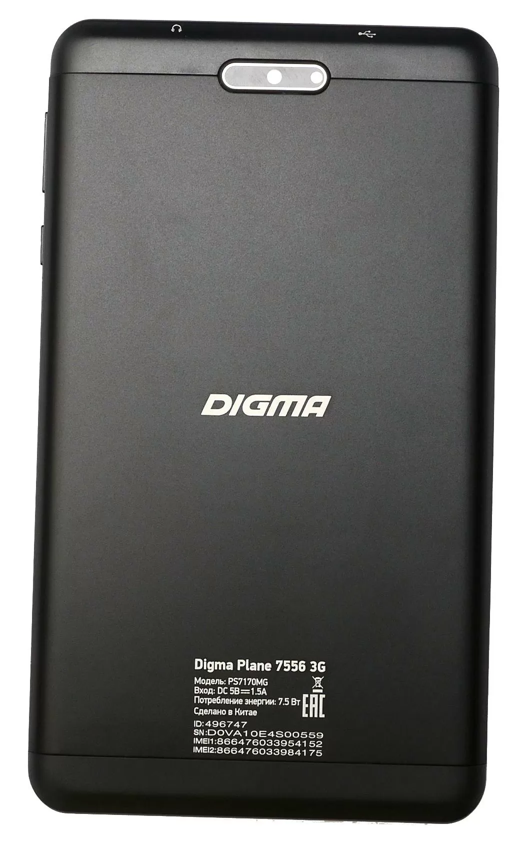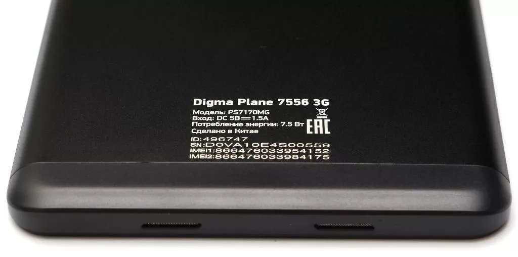 Также у Digma Plane 7556 3G есть два слота для SIM-карт и слот для карточки расширения формата microSD – слоты скрываются за заглушкой сзади сверху (над основной камерой). Обратите внимание – многие производители в дорогих планшетах убирают 3,5 мм аудио-порт, а количество слотов для SIM-карт в большинстве случаев ограничивают одним. А в бюджетной Digma Plane 7556 3G есть всё и даже больше.