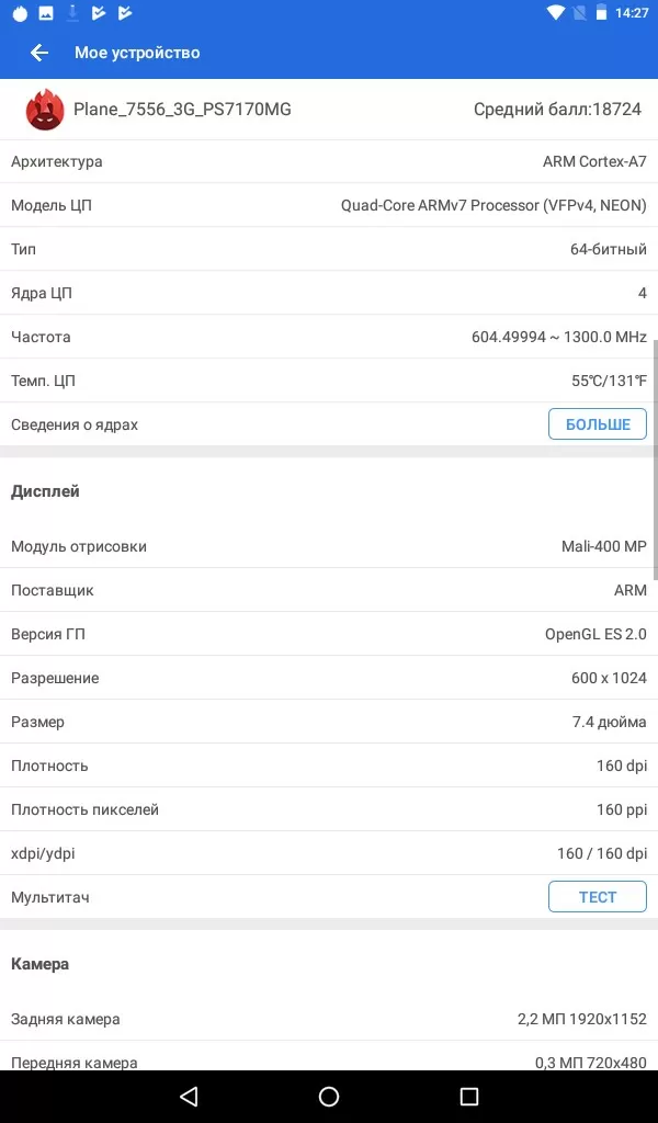 Что касается камер (они имеют разрешение 2 и 0,3 Мп), то на них лучше особо не рассчитывать (только если совсем нет других устройств для фото), качество снимков получается посредственное, бюджетные смартфоны делают более качественные кадры. А вот что можно похвалить – так это экран и батарейку. Во-первых, IPS матрица пусть и бюджетная, но всё же в сравнении с любой другой TFT-TN матрицей имеет отличные углы обзора (практически 180 градусов) и пусть не идеальную, но приятную глазу цветопередачу. Что до аккумулятора, то он имеет ёмкость 4000 мАч и в среднем его хватает на 4-6 часов в зависимости от сценария использования. То есть в принципе от одной зарядки планшет способен продержаться весь рабочий день, и попросится на зарядку он только к ночи.