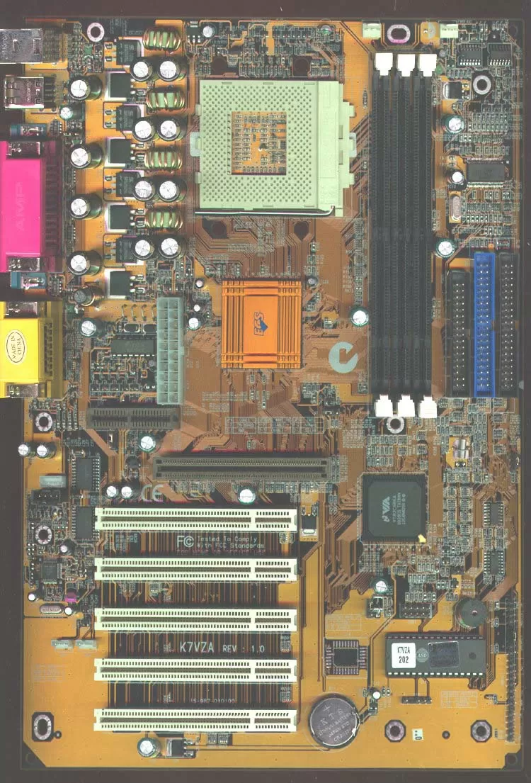 Что же в отношении K7VZA, то тут все те же рекомендации, что и для K7VZM, только ещё добавляется и формат ATX, предоставляющий 5 PCI и три DIMM слота. При покупке этой материнской платы требуйте от продавца установки и тестирования при вас модулей DIMM. В случае нестабильности требуйте замены BIOS, или памяти.