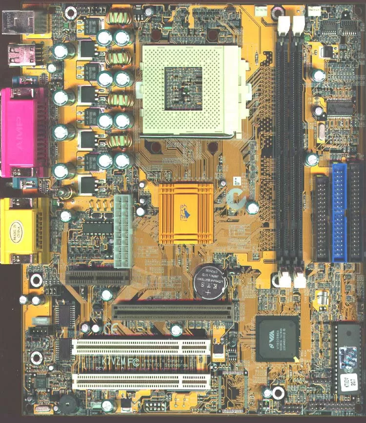 Рассмотрим повнимательнее конструкцию двух плат. Как и полагается в подобной ситуации, K7VZM представляет собой просто "обрезанную по вертикали" плату K7VZA, так что большинство элементов на платах одинаковы.