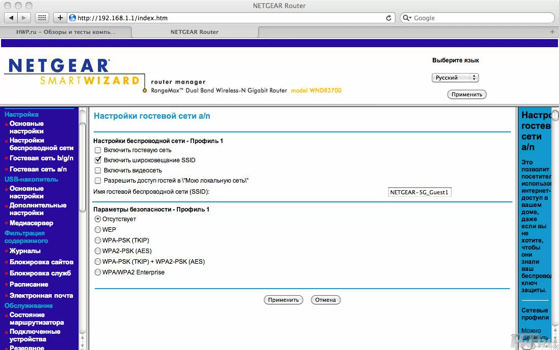 Сложный на первый взгляд (но весьма понятный при более внимательном рассмотрении) Web-интерфейс роутера позволяет произвести очень тонкую настройку как профессионалу, так и новичку – здесь есть все, что только можно придумать для маршрутизатора: QoS, удаленное управление, тонкая настройка беспроводных подключений и полосы пропускания, фильтр по MAC, шифрование всеми возможными методами, файрвол, блокировка URL, статическая маршрутизация, демилитаризованная зона (DMZ) и так далее. Настройки хорошо документированы, к каждой из них имеется исчерпывающая подсказка. Также роутер ведет журнал посещаемых сайтов. Имеется возможность задания блокировки определенных сайтов по расписанию. Например, в будние дни с 8 утра до 6 вечера запретить посещение развлекательных ресурсов.