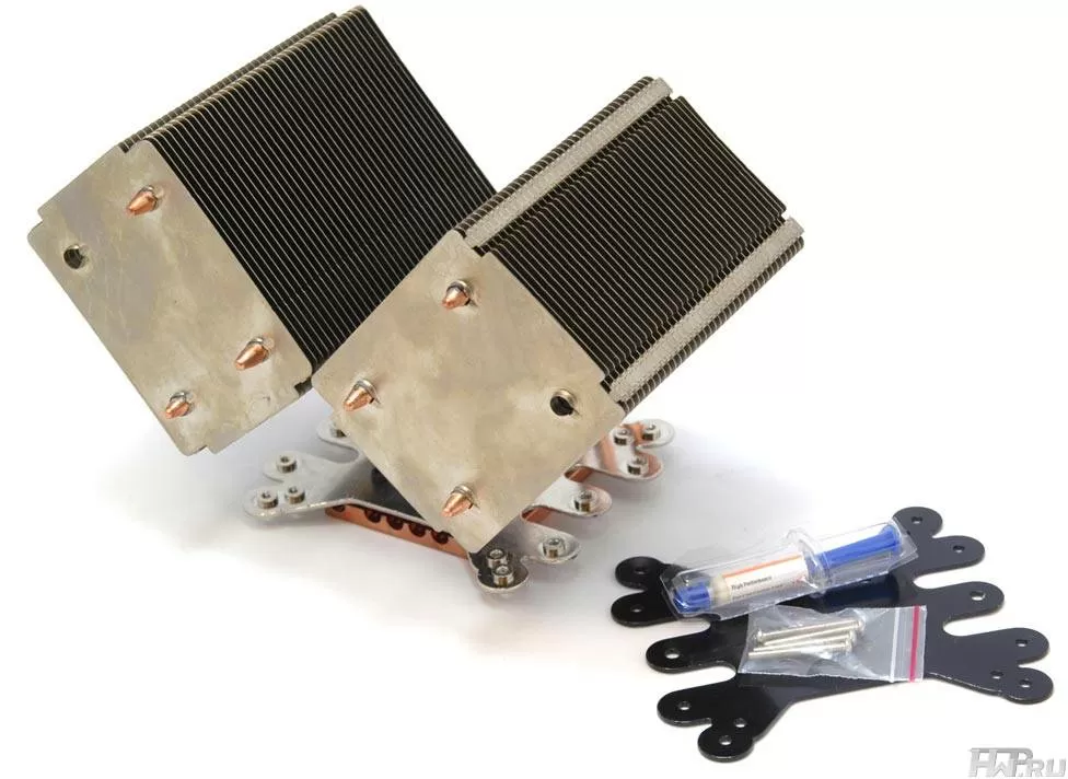 Комплектация кулера - минимальна, помимо набора крепежа, вы получите только маленький шприц с термопастой. Трудно сказать, что могло бы ещё понадобиться для пассивного кулера.