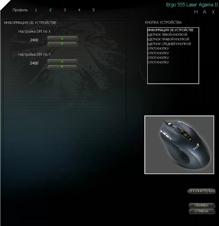 Пять игровых профилей подразумевают не только отдельные настройки чувствительности, но и отдельные настройки клавиш. Разумеется, вам решать, как именно настраивать профили, но никто не запрещает вам, например, настроить профили так, что различаться они будут только в настройках чувствительности, или, наоборот, чувствительность будет одна и та же, а кнопки будут иметь различные функции. Распоряжайтесь на своё усмотрение.
