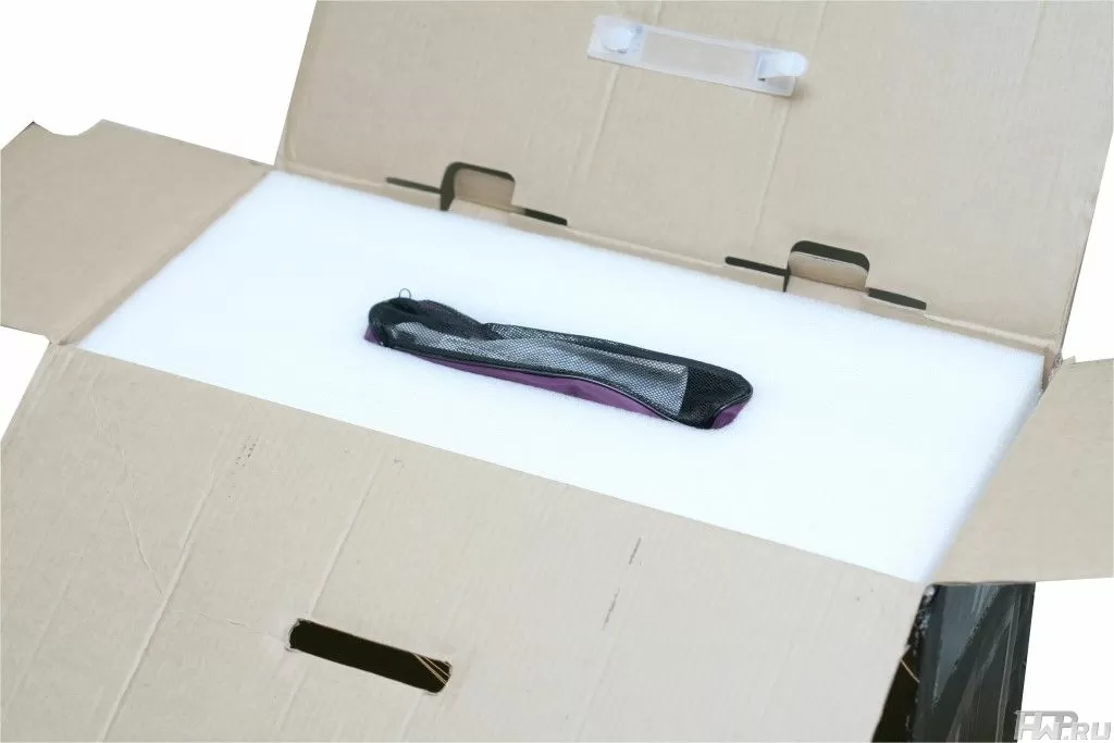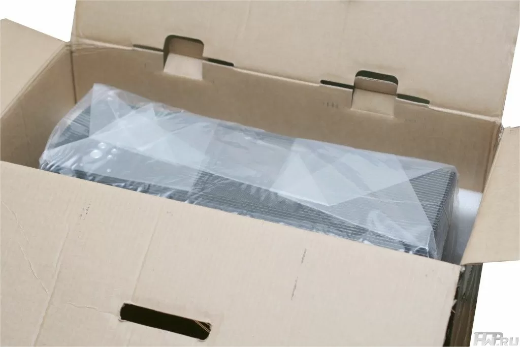 Открыв упаковку, нам на глаза попался сетчатый пенал, который служит хранилищем для аксессуаров и крепежных деталей корпуса. Упаковка самого корпуса выполнена выше всяких похвал. Внутри корпус зафиксирован в мягкий вспененный полиуретан, который предохраняет корпус от нежелательного воздействия при транспортировке, со всех четырех сторон.