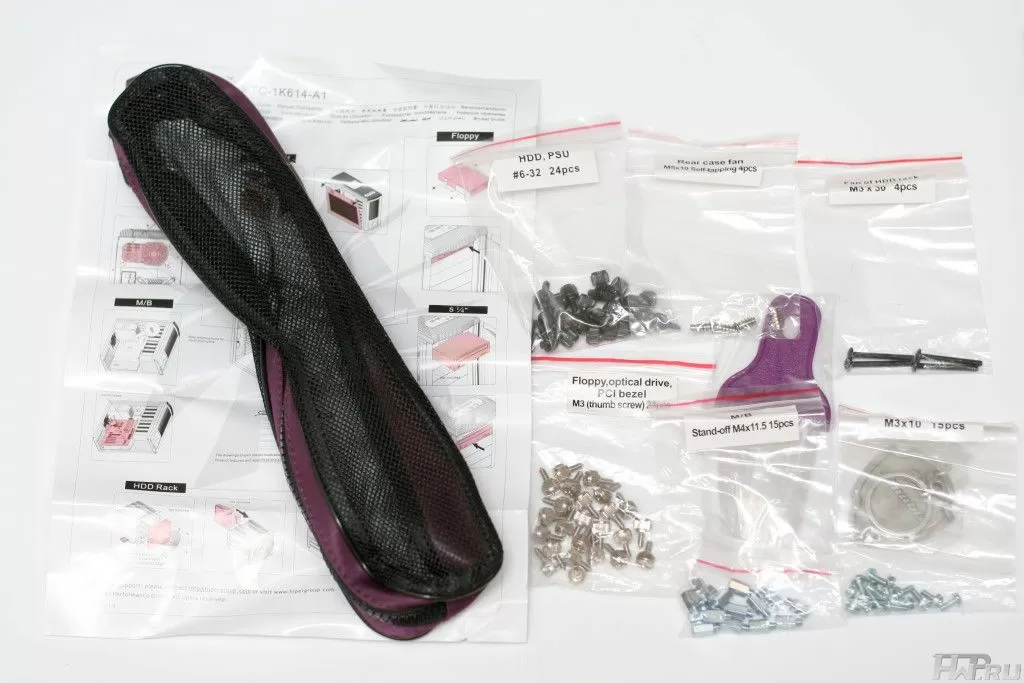 Нужно снова отдать должное компании Hiper за заботу о пользователе, так как все крепежные детали расфасованы по пакетикам, на которых имеются названия типов болтов и соответственно названия устройств, для крепления которых они используются.