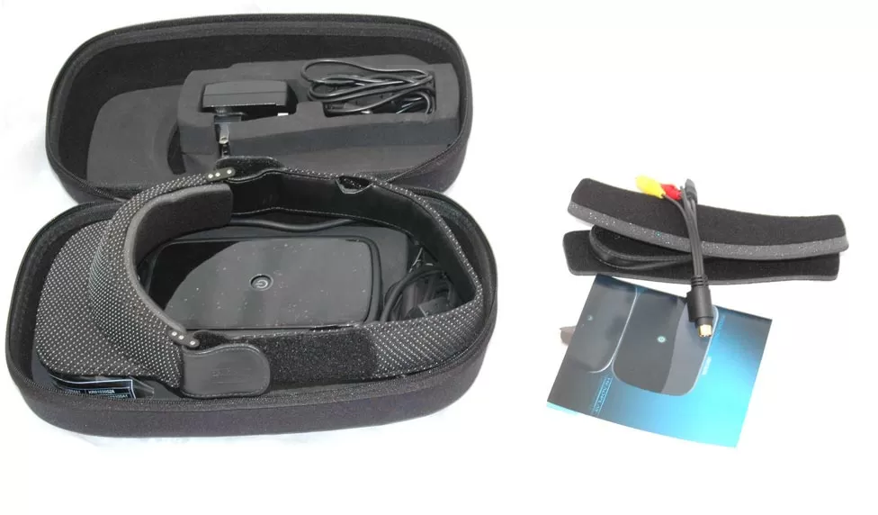 Очки поставляются в шикарном жёстком футляре на молнии, защищающим их от внешней среды. В футляре одновременно помещаются не только сама оптическая система HeadPlay Personal Cinema, но и "либератор" и пульт ДУ. Помимо этого, в комплекте вы так же найдёте: