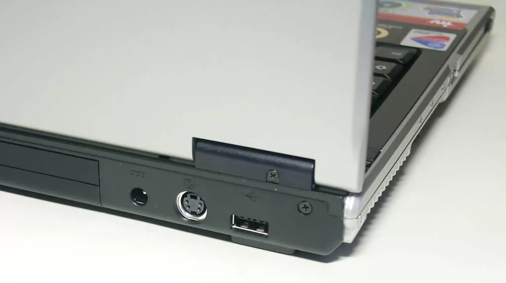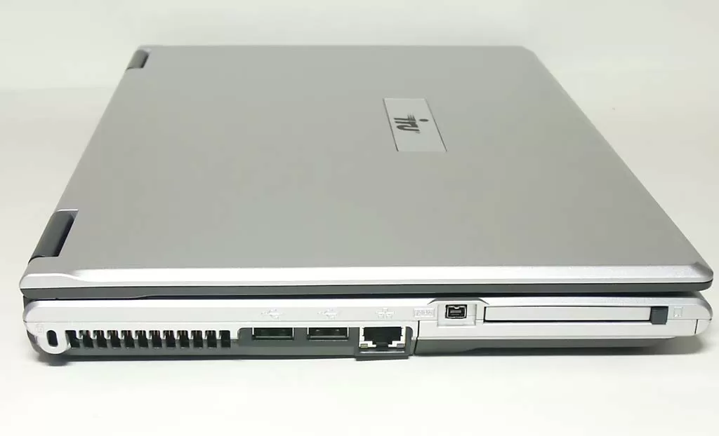 Слева на ноутбуке расположены два порта USB 2.0, один сетевой порт RJ45, один порт IEEE-1394a (4-контактный I-Link) и один слот PCMCIA. И хотя интерфейс PCMCIA уже достаточно старый, обилие плат расширения под PCMCIA заставляет производителей ноутбуков продолжать его интеграцию. Например, недавно появились и ТВ-тюнеры с интерфейсом PCMCIA. Слева от решётки радиатора установлен разъём для замка Kensington Lock, чтобы фиксировать ноутбук на рабочем месте или на витрине магазина. А то ведь и украсть могут...