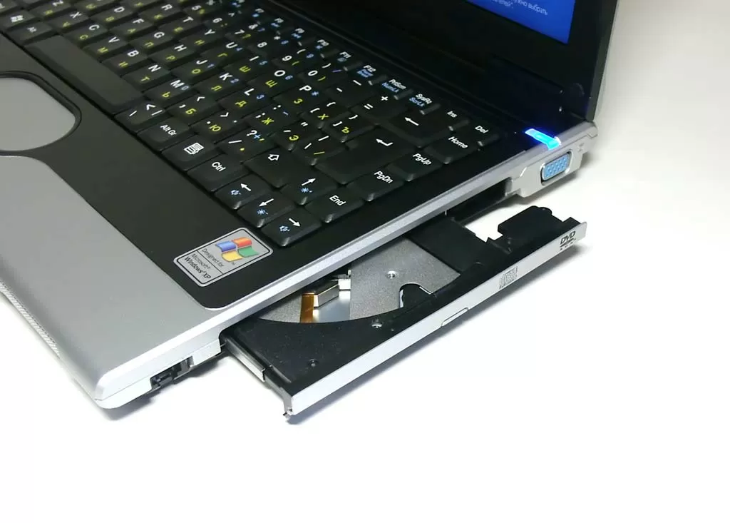 Справа традиционно располагается оптический привод, гнездо модема, и порт для подключения монитора. По умолчанию в ноутбуке iRU Novia 3221W установлен оптический привод DVD+CDRW, способный читать, записывать и перезаписывать CD диски на скоростях до 24x, а так же читать DVD на скорости до 8x, но пользователь при желании может установить и другой драйв, благо сегодня в продаже имеются и DVD-писалки для ноутбуков различных расцветок.