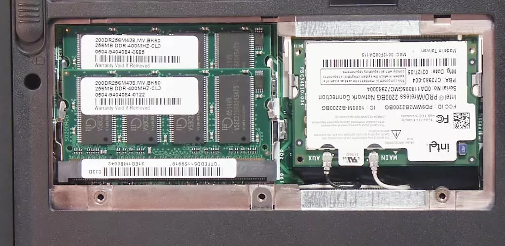 В модели iRU Novia 3331W по умолчанию установлено 512 Мб памяти DDR400 в двух модулях SO-DIMM. Этого более чем достаточно для просмотра DVD-фильмов и работы в офисных приложениях, на которые Novia 3331W и рассчитан. Но если вы пожелаете заменить модули памяти, вам это будет очень просто сделать, открутив всего 4 винтика на нижней панели ноутбука. В ноутбуке установлен жёсткий диск Samsung MP0603H объёмом 80 Гб. Это весьма распространённый мобильный винчестер. Он имеет 8-мегабайтный буфер, частоту вращения шпинделя 5400 оборотов в минуту и типичное энергопотребление 2.4 Вт.