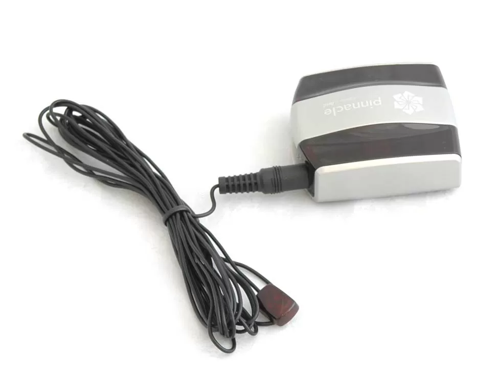 Чтобы с Windows Media Center можно было работать независимо от того, подключен ТВ-тюнер или нет (ну зачем, например, тюнер при просмотре видеозаписей?), датчик для пульта ДУ представляет собой отдельное устройство с USB интерфейсом. По размерам он едва больше спичечного коробка, но может не только устанавливаться рядом с компьютером, но и крепиться на стену. Помимо USB-разъёма, на корпусе этого датчика располагаются ещё два 3.5 мм гнезда, как для наушников. К одному из них вы можете подключить ИК-повторитель, маленький инфракрасный передатчик.