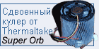 | Наше мнение: Скажу честно, до того момента, как фирма Thermaltake сообщила мне, одному из первых, о завершении разработки сдвоенного кулера, я считал Orbы образцами интенсивного пути развития. Но как оказалось, экстенсивный путь намного проще. Но не смотря на это, я до последнего момента не мог представить себе двух вентиляторов на этом кулере. В голове проносились ужасные мысли и кошмарные картины сменялись одна за другой. |