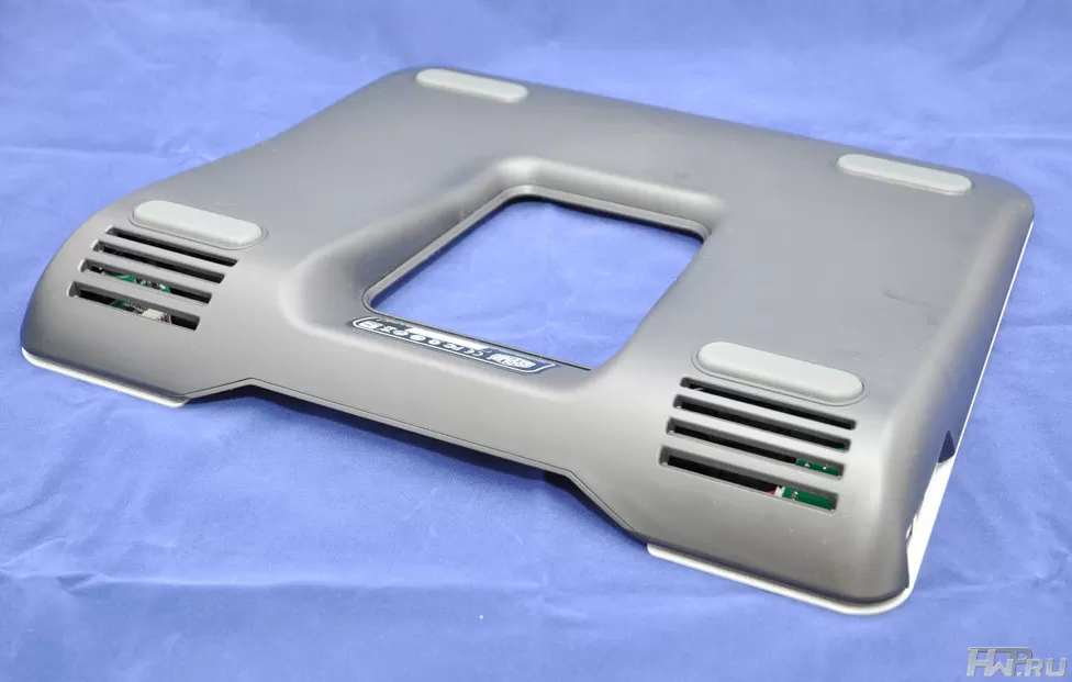 Как результат – 80-миллиметровые вентиляторы работают исключительно тихо. Их шума не слышно за работой штатного вентилятора большинства ноутбуков, даже если его звук немного другой тональности. Пространство между крестовиной верхней части U-образного вентиляционного отверстия и нижней частью ноутбука также идеально подходит для установки внешнего жёсткого диска паспортного формата, который будет оставаться прохладным благодаря охлаждающей подставке.