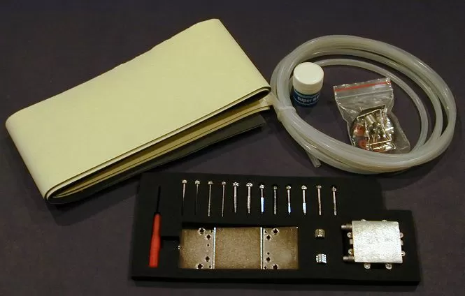 Подход к водяным кулерам более сложный и требует усиленного контроля, прежде всего, со стороны производителя. Вот почему производителей систем водяного охлаждения можно пересчитать по пальцам, а стоят такие системы весьма дорого. Обычно, полноценный водяной кулер состоит из радиатора, прилегающего к процессору, водяной помпы, гонящей воду по соединительным трубкам, самих соединительных трубок и радиатора, в котором нагревшаяся вода охлаждается, прежде чем охлаждить процессор. Модель SCC-01 может быть использована для процессоров AMD-K5, K6, K7, всех моделей Pentium и Celeron. Кулер имеет шесть каналов, по которым протекает поток воды. Он крепится на процессор при помощи специальных креплений из нержавеющей стали. В комплект входят: 3 метра силиконовой трубки, 15 г. термопасты, 2 куска липкой ленты. Перед установкой кулера на процессор рекомендуется проверить, не протекает ли где вода, и если такое случается, устранить неполадку. Ведь фирма не несёт ответственности за принесённые кулером повреждения.