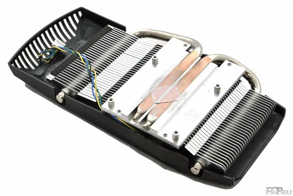 Радиатор кулера DirectCU состоит из 32 пластин и двух медных тепловых трубок, непосредственно примыкающих к графическому чипу. Этот вариант уже давно доказал свою эффективность, так что можно рассчитывать на хорошее охлаждение.