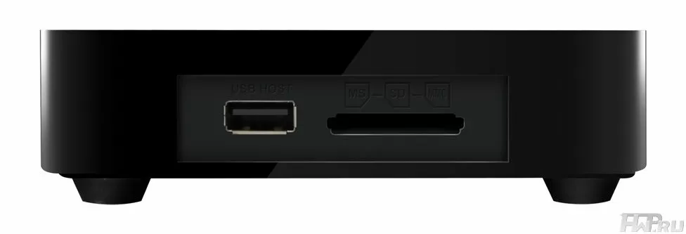 Это очень компактный плеер, размерами меньше VHS видеокассеты. При этом, он имеет встроенный картридер формата SD/MMC/MS, USB порт для подключения внешних винчестеров, сетевой интерфейс с поддержкой Wi-Fi при использовании USB-донгла и порт HDMI. Если в общем, то модель позволяет производить любые подключения к носителям информации, разве что, кроме (e)SATA. Подробные характеристики указаны далее: