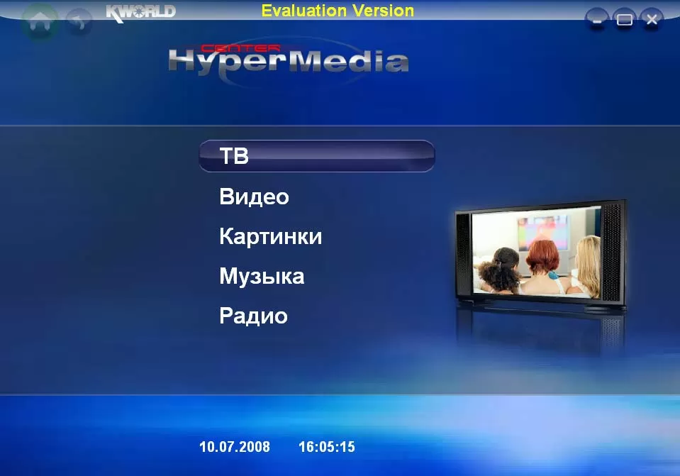 Медиа-центры сегодня являются очень заманчивой альтернативой для производителей ТВ-тюнеров. Во-первых, это очень модная и востребованная возможность, моментально выводящая обычный ТВ-тюнер в разряд мультимедийных комбайнов, с помощью программного обеспечения которых можно не только записывать, но и просматривать телепередачи, записи, фильмы, картинки и так далее. Пользователи медиа-центров редко требуют от них такой функциональной насыщенности, как у обычных программ просмотра ТВ. Главное - это удобство. Посмотрим, насколько соответствует этому требованию KWorld HyperMedia Center.