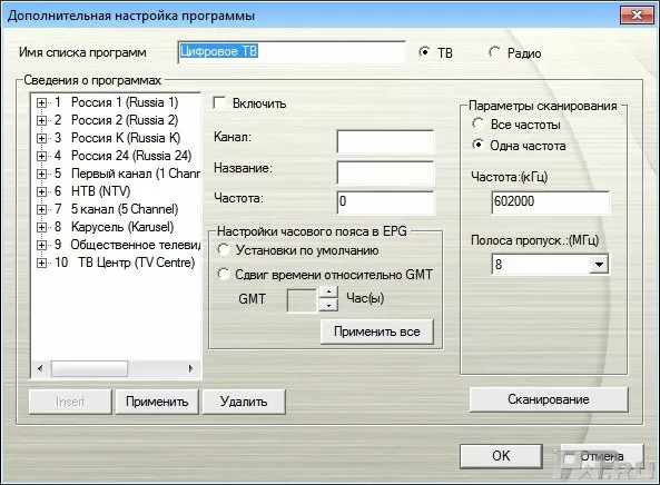 В настройках цифрового ТВ и радио можно осуществить поиск (в полностью автоматическом режиме, или же с заданием несущей частоты), отредактировать список каналов, включить поддержку TimeShift, а также выбрать формат видеозаписи.
