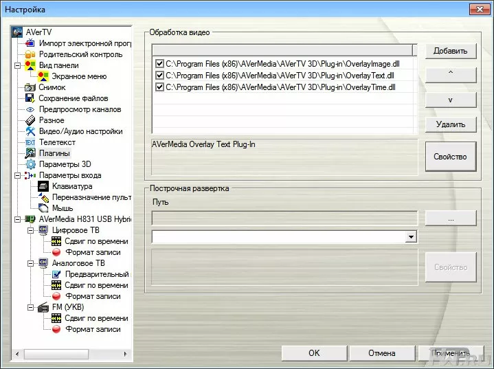 AVerTV 3D поддерживает плагины, в частности, присутствует поддержка свободно-распространяемых плагинов для ТВ-тюнеров конкурирующей фирмы Beholder.