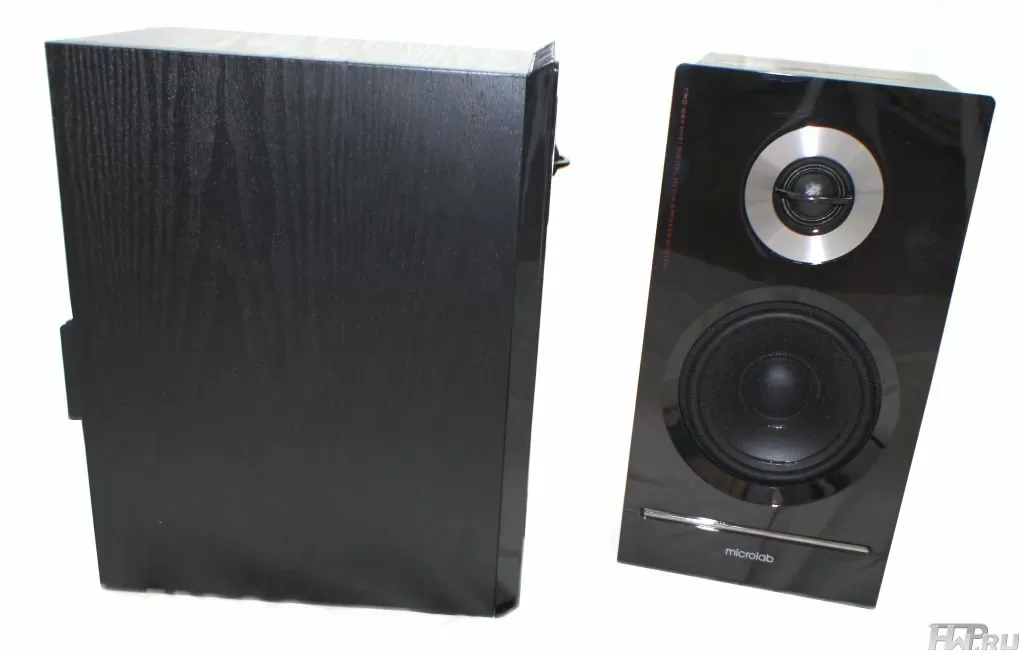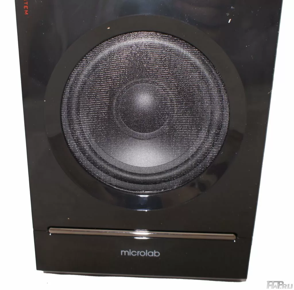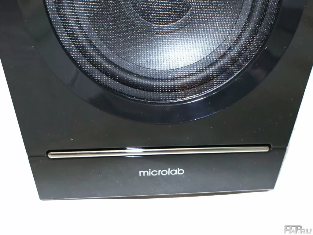 Дополняет картину пластиковая полоска серебряного цвета внизу лицевой панели и надпись "Microlab" под ней. Всё, образ готов. Остальные же стороны корпуса привычны и ничем особенным похвастаться не могут.