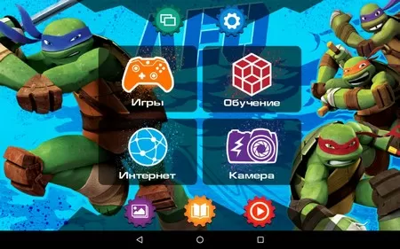 Мы не будем особо рассказывать о фирменном интерфейсе TurboKids Черепашки-ниндзя, который и является главной фишкой детского планшета, так как подробно рассказали о нём в нашем видео-обзоре, ссылку на который оставили в начале данного обзора.