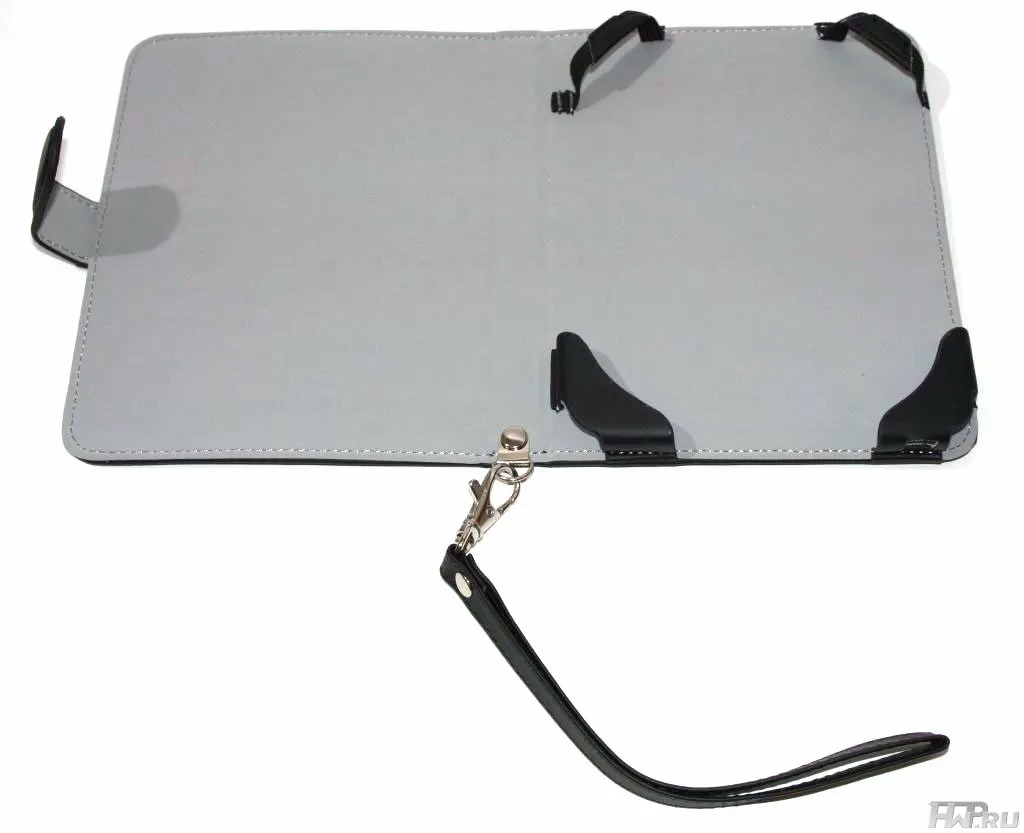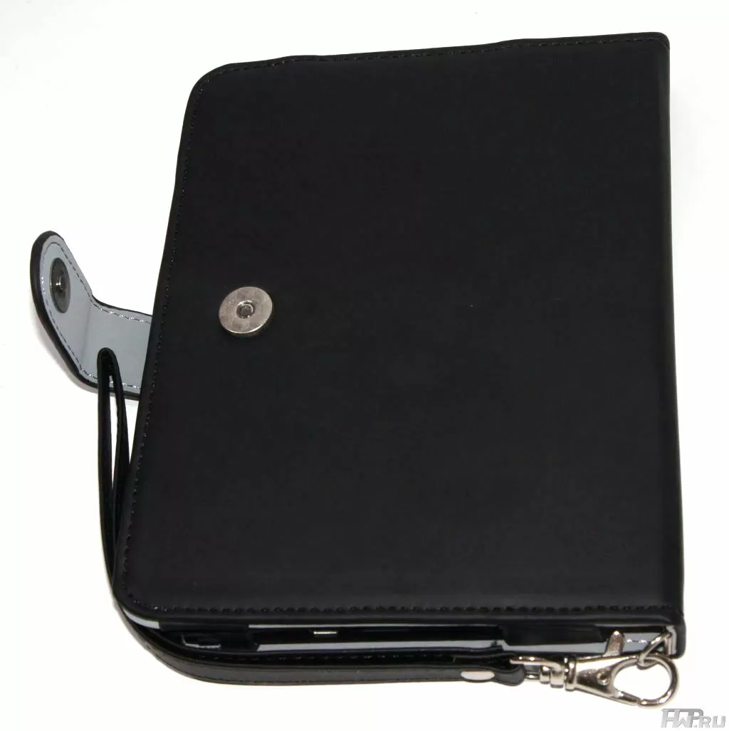 Снаружи чехол выполнен из очень приятного на ощупь кожзама, а внутри - из мягкого материала, идентифицировать который нам очень сложно. Язычок расположен правильно - на левой, откидывающейся стороне.