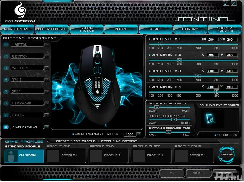 Разбираться в возможностях приходится недолго - интерфейс понятный и простой. Что приятно, изменения "записываются" в мышку практически моментально - достаточно нажать "Apply" или "OK" и данные мгновенно оказываются во внутренней памяти устройства.