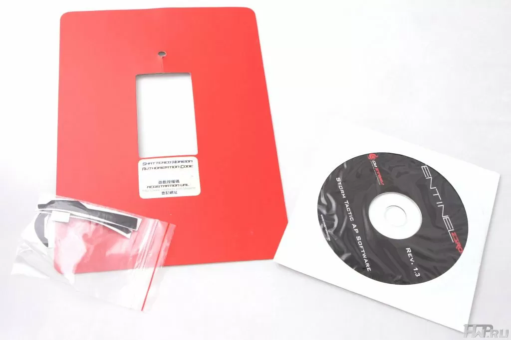Внутри упаковки помимо манипулятора можно найти не только "джентльменский набор" (руководство пользователя и диск с драйверами и ПО), но и набор запасных "ножек", а также регистрационный код к игре "Shattered Horizon" (очень приятный бонус).