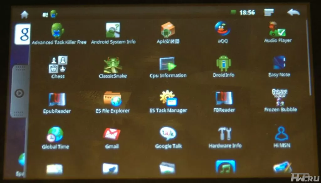 Учитывая, что девайс мультимедийно-развлекательный, должен присутствовать набор предустановленного программного обеспечения, чтобы, как говорится, боеготовность была "из коробки". И тут есть чем похвастаться - имеется видео плеер, аудио плеер, фотовьювер, несколько игрушек, skype (разумеется с неполным функционалом, так как нет камеры), читалка книг, Google Maps и многое другое.
