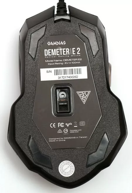 Снизу – четыре пластиковые ножки. В целом ни по эргономике ни по качеству сборки вопросов к Demeter E2 нет, мышка добротная, хотя и без каких-то особых изысков.