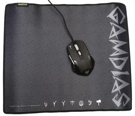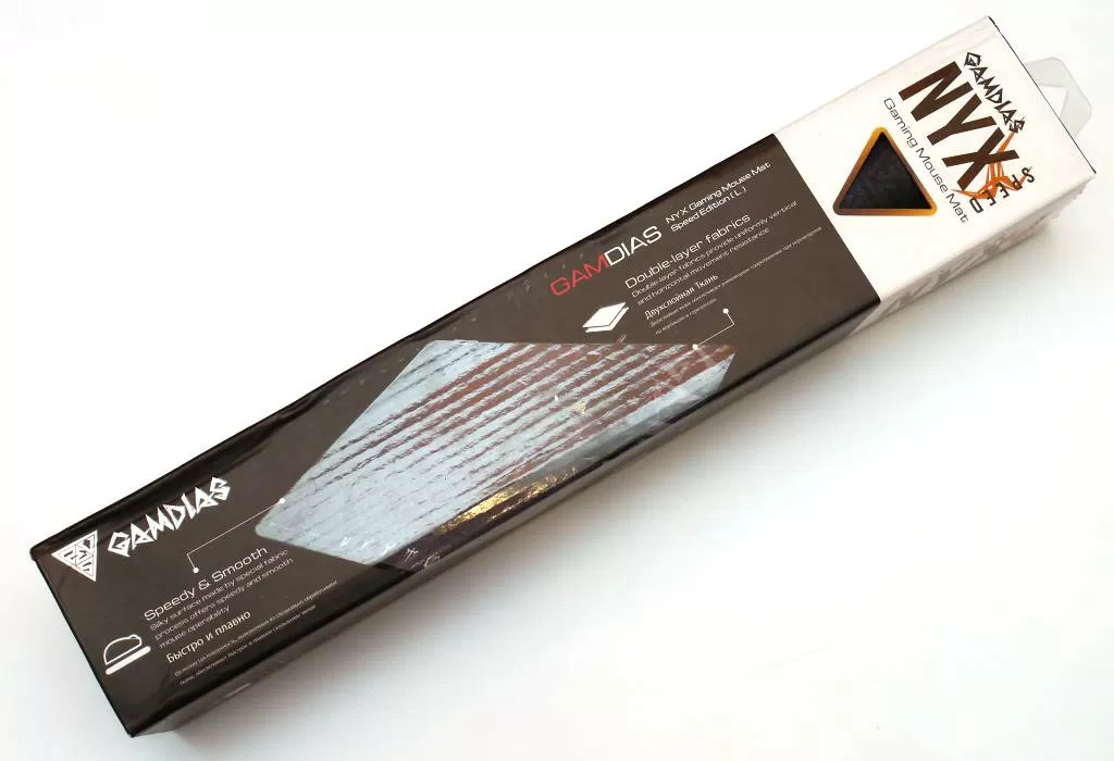 И пара слов о коврике, который нам любезно доложили к комплекту. Это Gamdias Nyx Speed, продаёт он в двух размерах – 350х280 и 430х350 мм. Нам достался большой размер.
