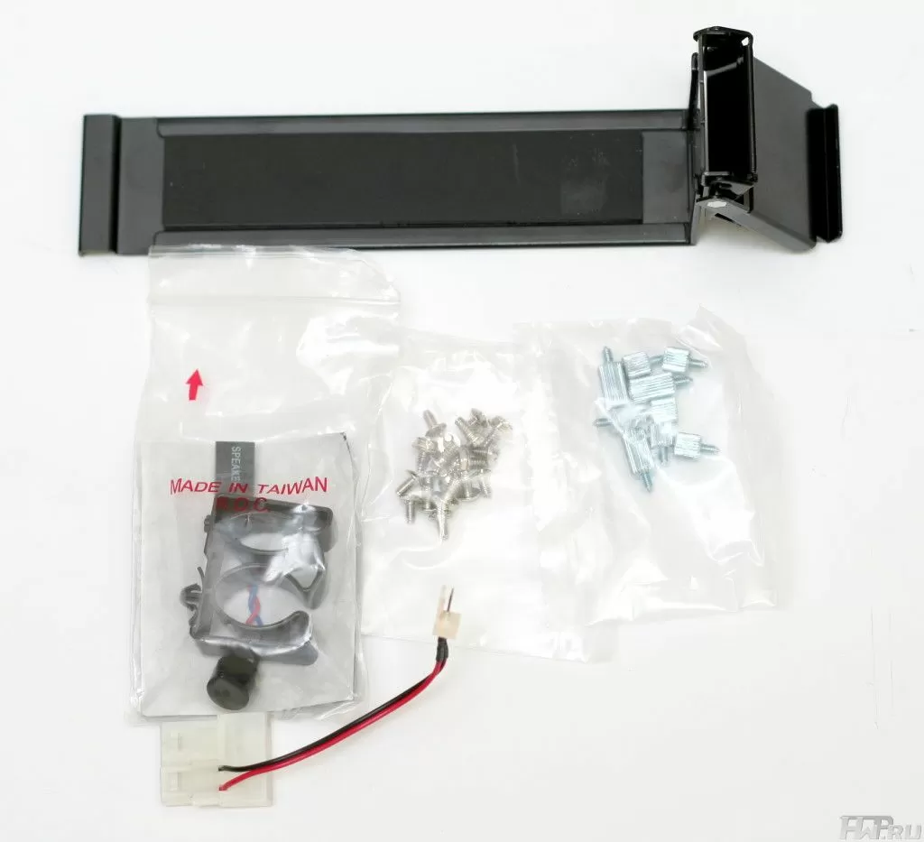 Набор аксессуаров, найденный внутри, оказался более чем скромным. Внимание привлекает лишь дополнительный крепеж блока питания, которым вы можете воспользоваться в случае необходимости. Маленький набор винтов говорит нам о том, что PC-K62 поддерживает сборку без применения отвертки, что мы относим только к плюсам.