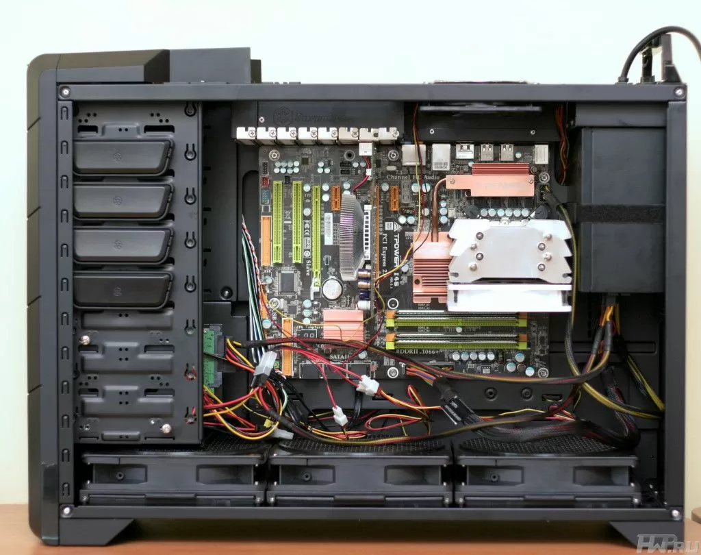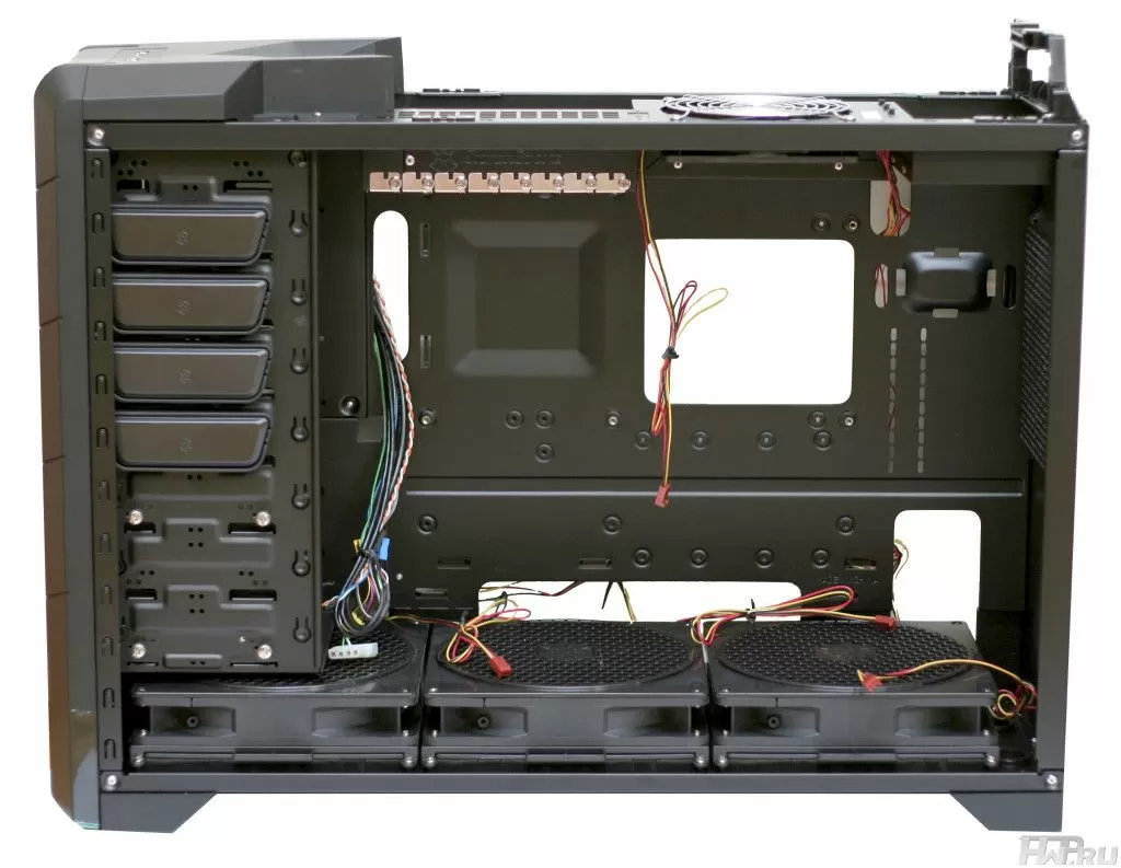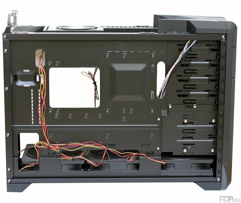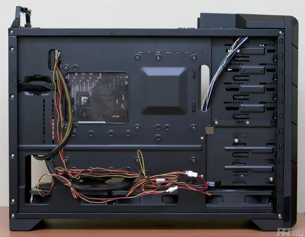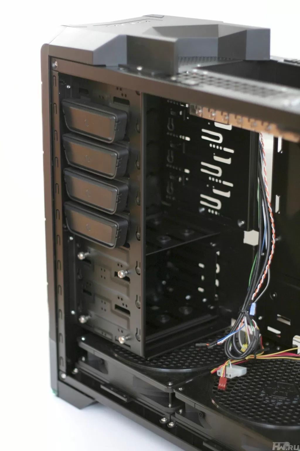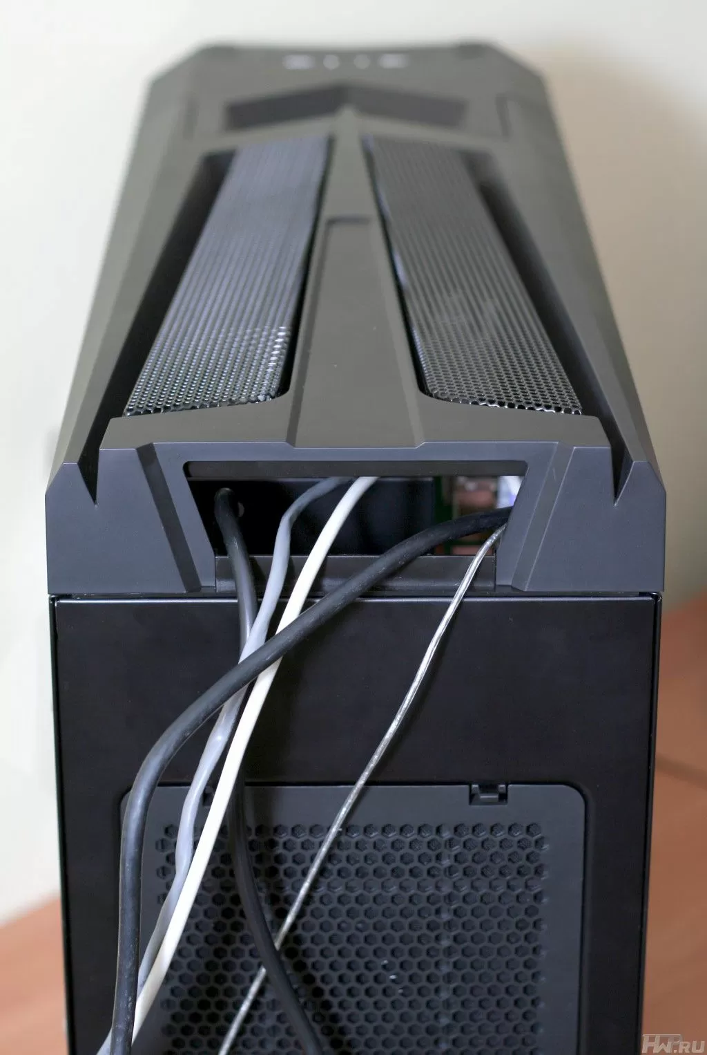 Raven 2 дает возможность спрятать все питающие кабели за заднюю стенку. Кроме того, в верхней части в главном отсеке корпуса провода можно закрепить на специальные крепежные крючки.