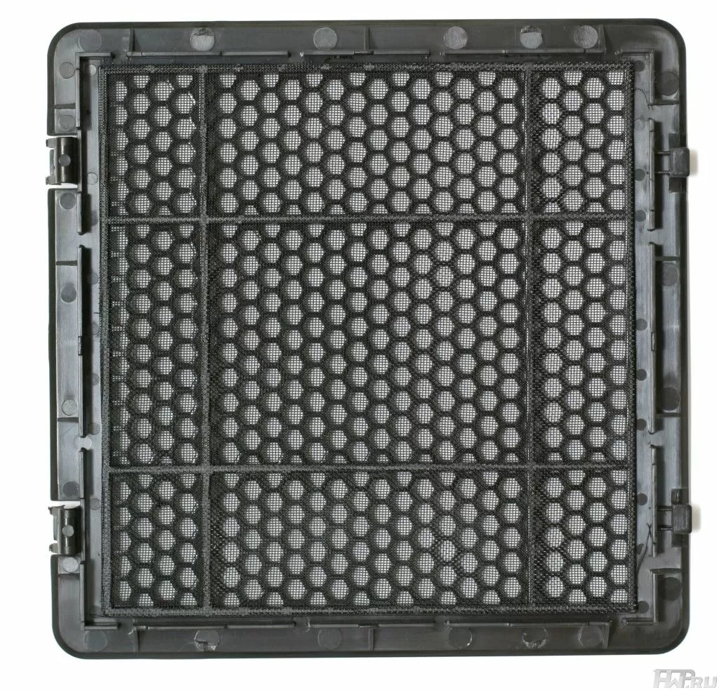 На задней части корпуса находится вентиляционное окошко с пылесборным фильтром, через которое вентилятор блока питания будет забирать воздух снаружи. Фильтр легко снимается и может быть просто очищен или промыт напором воды.
