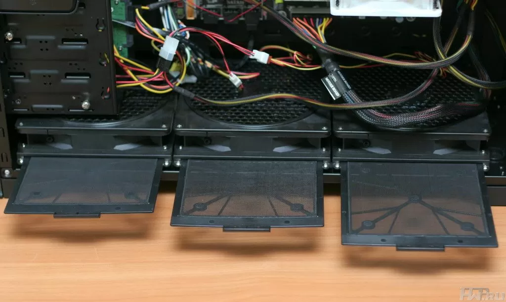 Переключение нижних 180 мм вентиляторов в тихий режим работы на 700 об/мин, практически не повлияло на производительность. Всего на 1-2 градуса поднялась температура комплектующих по сравнению с максимальным режимом.
