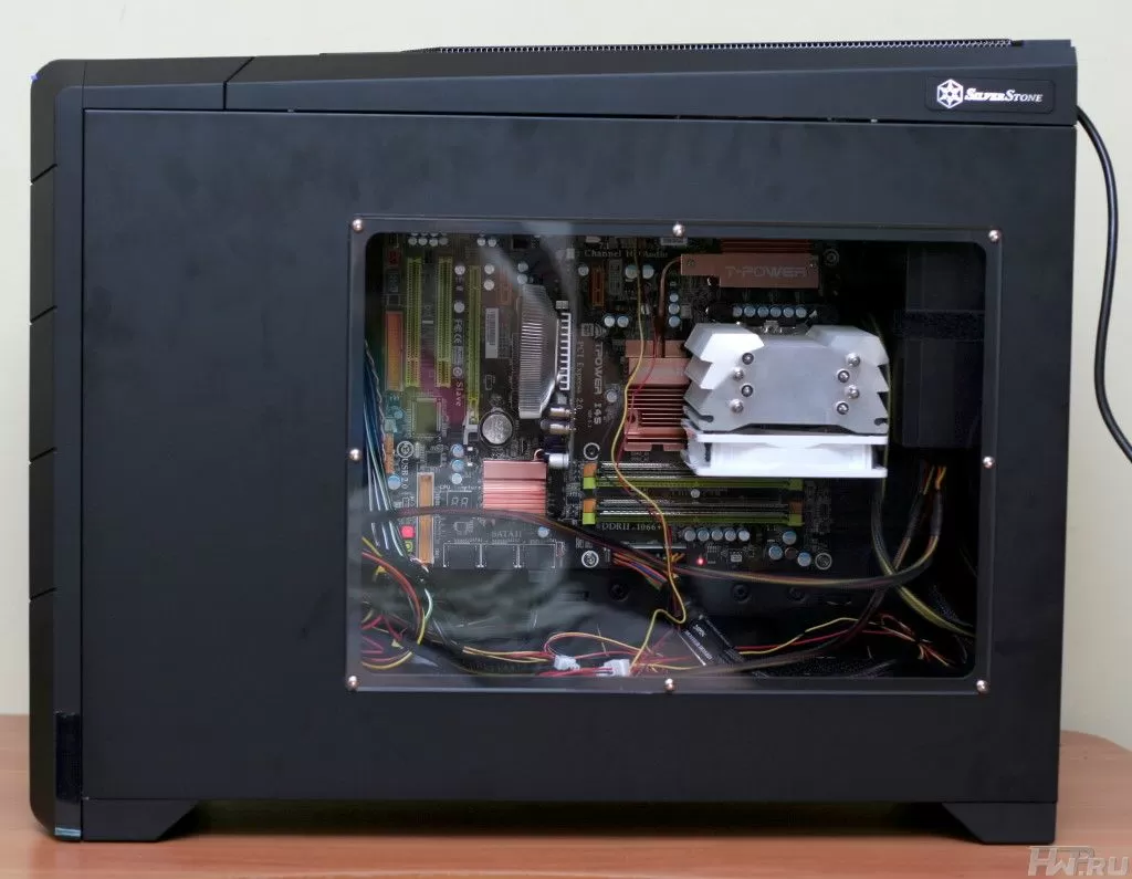 Внутри Silverstone Raven RV02 оказался достаточно элегантен, за счет того, что внутренние части корпуса оказались выкрашены в точно такой же цвет, что и наружные. Это конечно красиво, но не практично, так как скорее всего со временем внутри корпуса появятся заметные царапины.