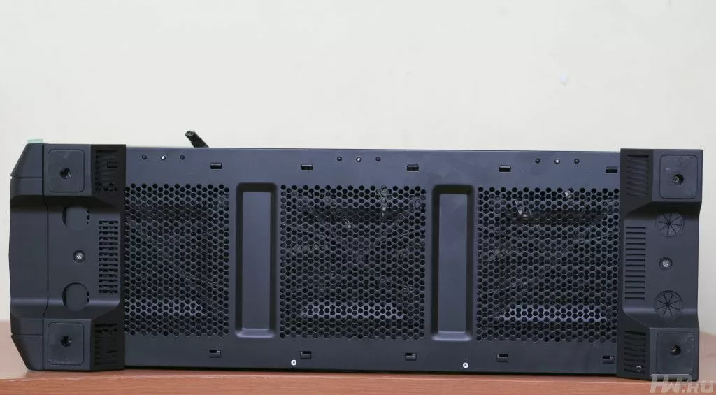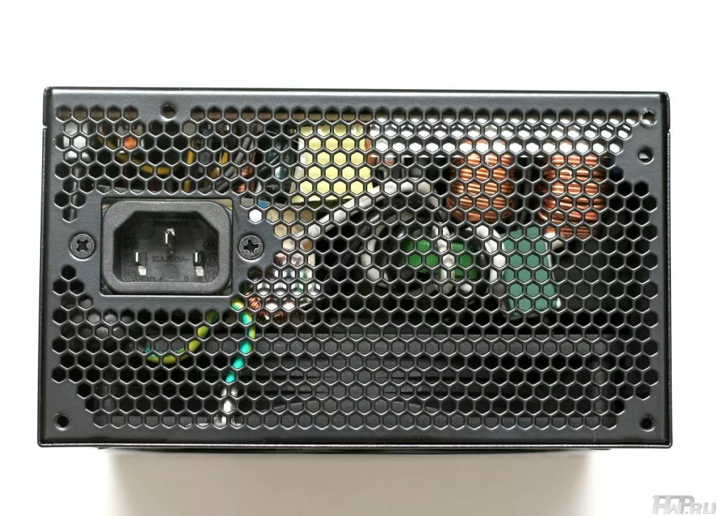 Охлаждение внутренних силовых компонентов блока питания обеспечивается с помощью вентилятора и одной из боковых стенок, перфорированной "сотовыми" отверстиями. Достаточно странно, что в этом месте, как и на любом другом у ST60F, отсутствует тумблер питания. Это конечно не трагедия, но выглядит все равно достаточно неожиданно. До этого момента не было никакого ощущения, что при производстве ST60F экономили.