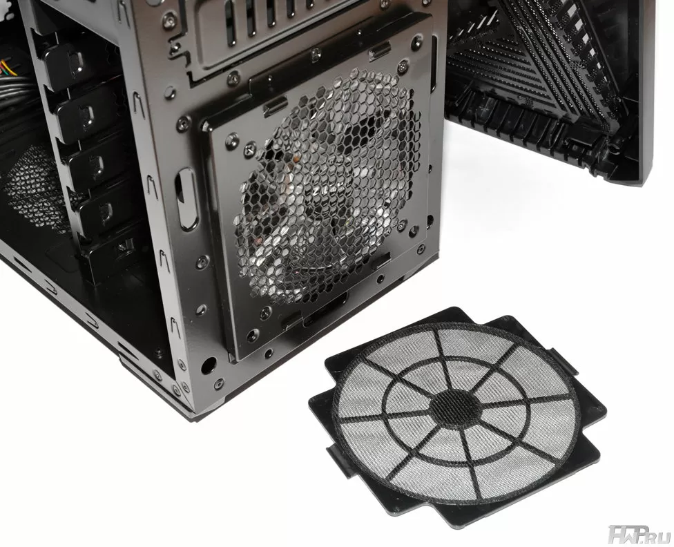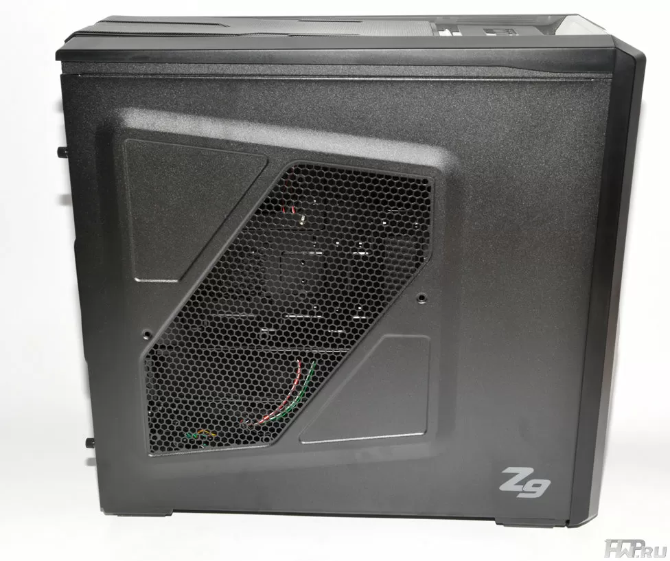 На снимке видно, что левая боковая панель Z9 оборудована сетчатым окошком, на которое, к слову, можно установить два 120-мм вентилятора (внизу и вверху).