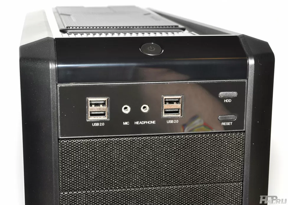 Конструкция корпуса очень прочная. Он сделан из хорошей стали и достаточно качественного пластика, хотя здесь и нет сверхдорогих сверхвысококачественных материалов. В любом случае, потрогав корпус руками, не скажешь, что он дешевый. Разбирается корпус просто. Лицевая крышка снимается простым нажатием на защелки. Тоже самое касается верхушки – она легко разбирается, что будет полезным при очистке компьютера от пыли. Мы не нашли ни одного острого угла или грани, о которую можно поцарапаться, но, по нашему мнению, их отсутствием должен похвастать любой нормальный корпус.