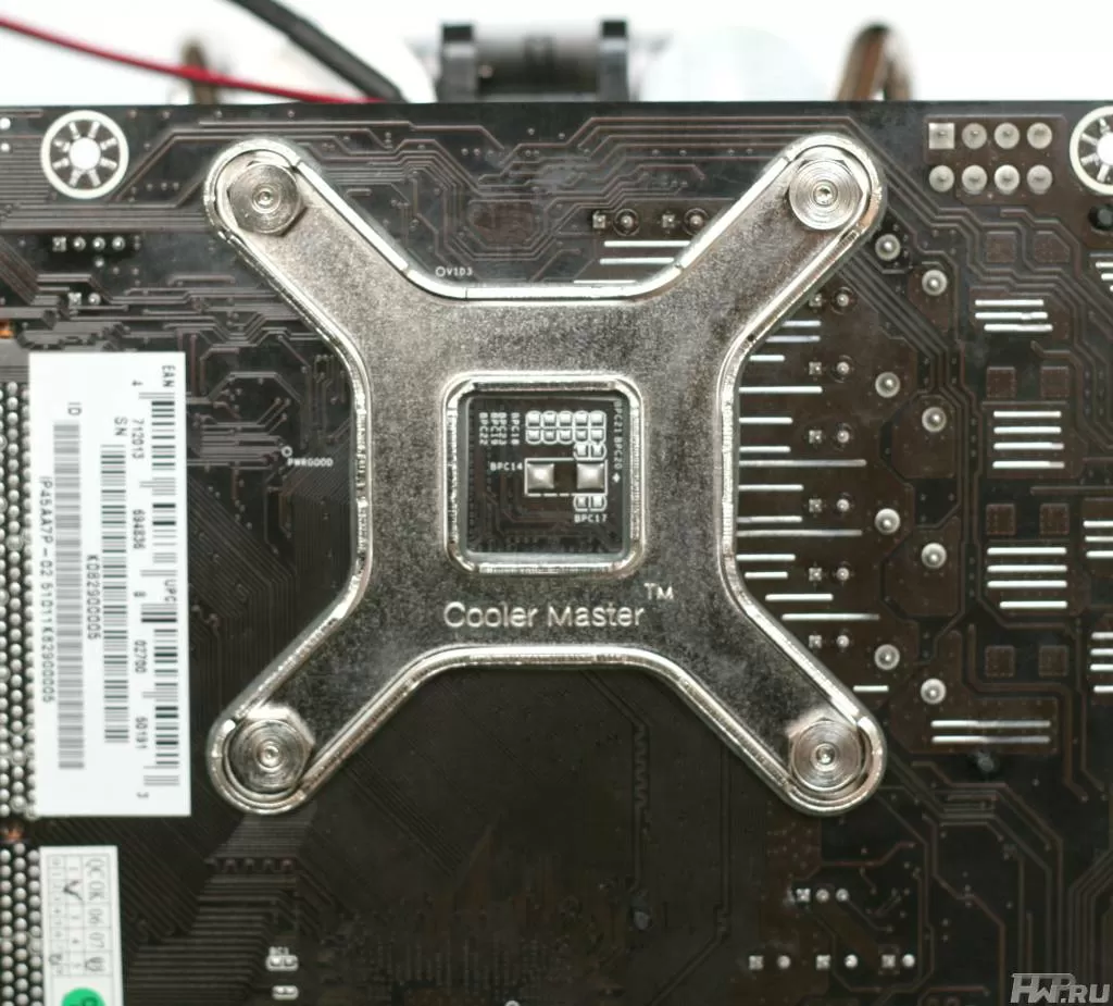 Весь процесс крепления сводится к тому, что на основание кулера крепятся две пластины соответствующие типу процессорного разъёма LGA 775, в которые вворачиваются четыре шпильки с резьбой, и на них же устанавливаются резиновые прокладки для безопасности материнской платы. Завершает установку процесс притягивания кулера через отверстия в backplate с оборотной стороны платы гайками. Хочется отметить, что при таком способе крепления достигается равномерный контакт радиатора и процессора, который будет способствовать максимально эффективной теплопередаче.