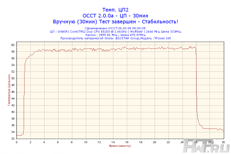 Температура в помещении во время тестирования удерживалась в районе 24-25° С. Технология энергосбережения EIST (Enhanced Intel SpeedStep Technology) и C1E поддержка, на время тестирования были отключены в BIOS материнской платы. Каждый из режимов тестирования проходил не меньше получаса. Тестирование кулера проходило в двух режимах: