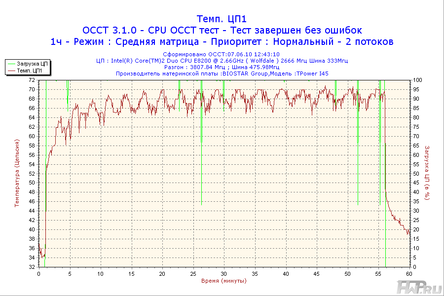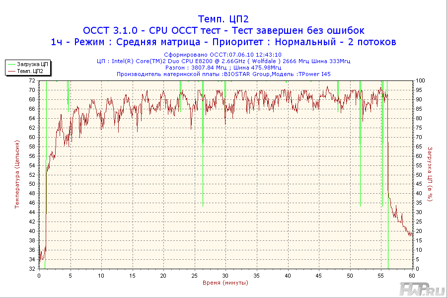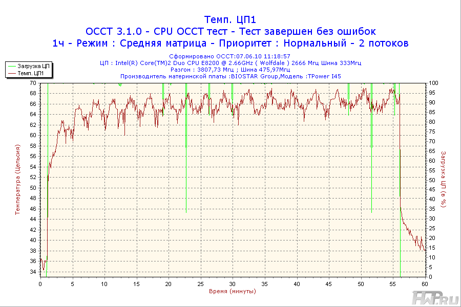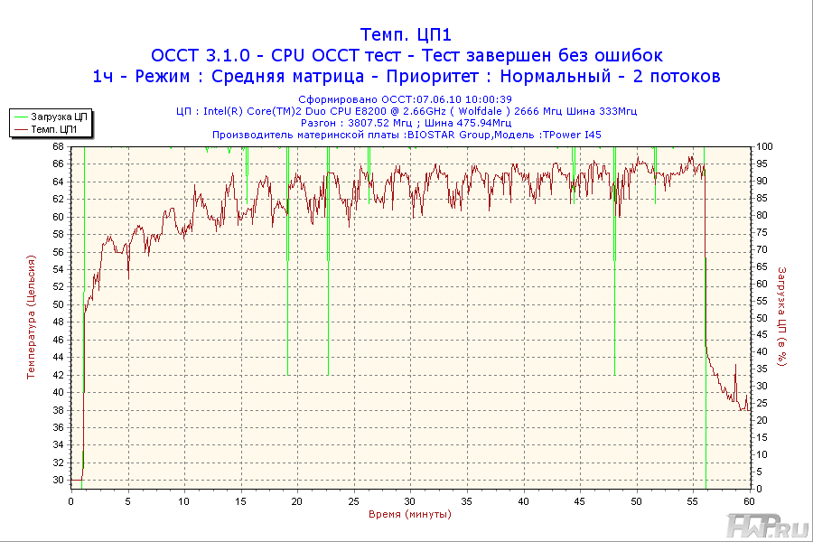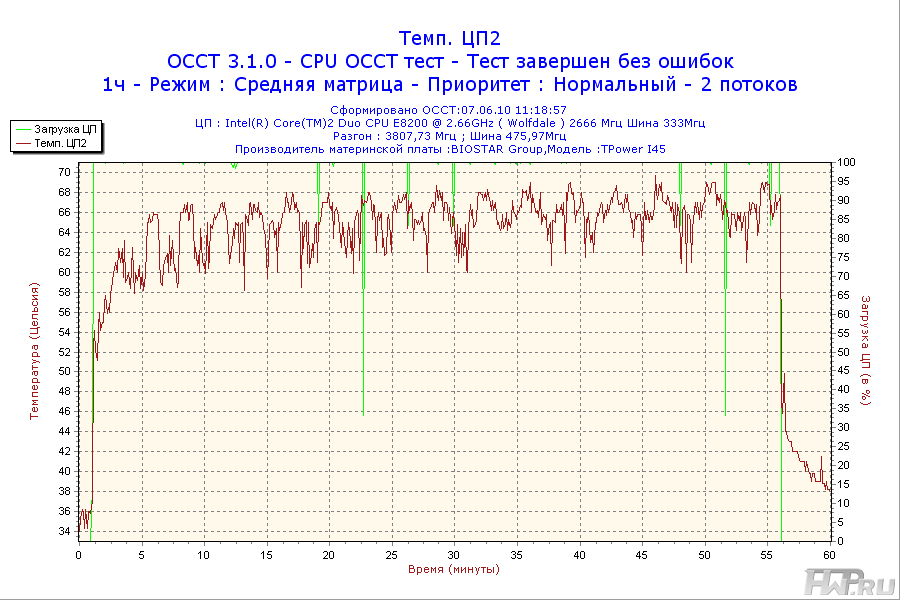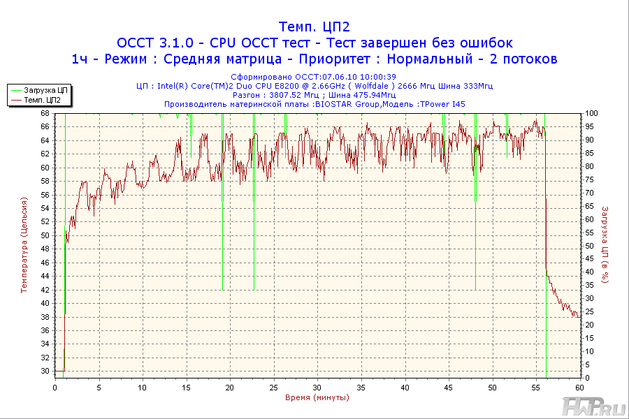 - Процессор - Intel Core 2 Duo E8200 2,66GHz @ 3,8GHz (Vcore = 1.45V);