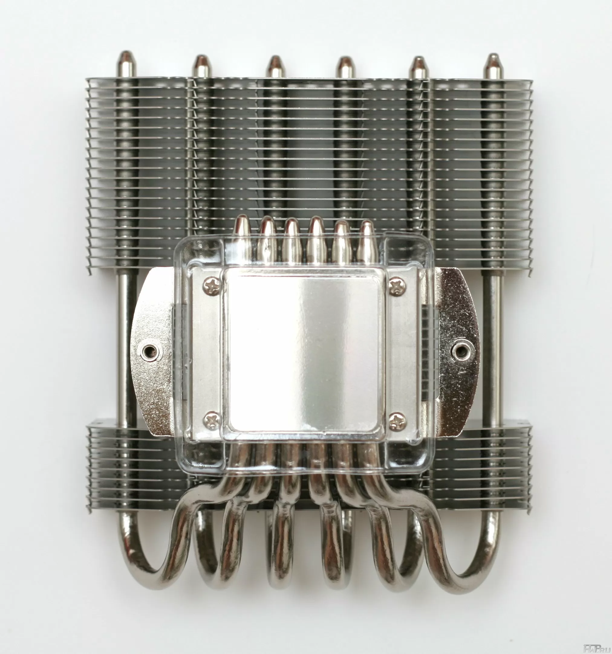 Число и форма пластин остались идентичными прошлой версии - их 44 штуки толщиной 0,5 мм и с расстоянием в 2,5 мм. Медное основание кулера выполнено все в таком же, присущем Noctua стиле, оно покрыто никелем, ровное и имеет специфическую шероховатость. В месте контакта трубок с основанием можно увидеть припой, правда реализация его оставляет желать лучшего, он к сожалению не идеален и имеет пустоты.